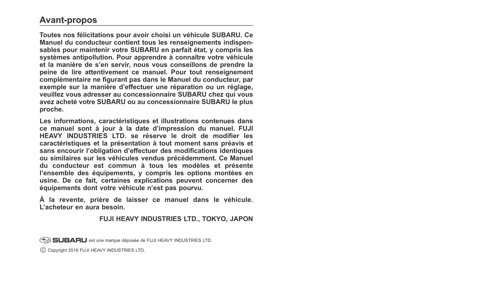 2017 Subaru Crosstrek Owner's Manual | French