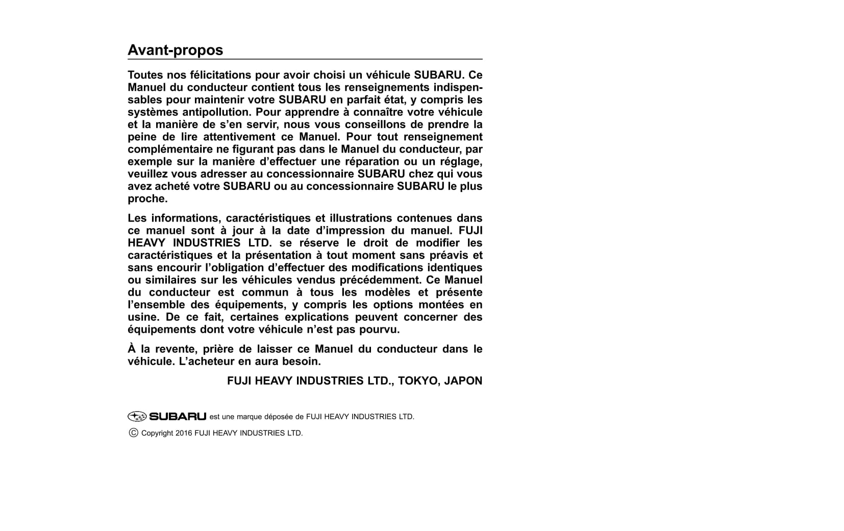 Dieses 680-seitige französischsprachige Autohandbuch, das auf Anfrage gedruckt wird, bietet umfassende Anweisungen für Ihr Subaru Forester-Fahrzeug.